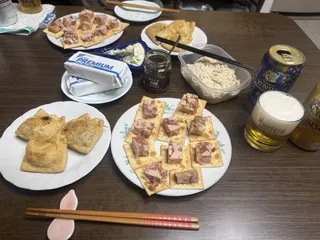 実家で大相撲観戦後に乾杯🍻 成城石井の自家製ソーセージ入り牛タンアスピックとダナブルーのブルーチーズを父と実食🍷(旦那はブルーチーズダメなので家では食べないようにしてます💦) ブルーチーズが塩っぱいので、ビーグル養蜂園のはちみつ🍯を付けて食べました父は はちみつ付けて食べるのなんて初めてだ!と驚いてました😅