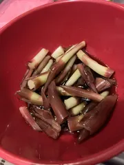 『茗荷の茎』大容量で安かったです!ただ、多すぎて どうしたもんかそうだ、浅漬けにしよう☺️今朝からひたすらポリポリかじってます✨うまい!ポリポリポリポリでも、あきた!…ポリポリポリポリ