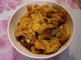 親子丼 お肉プリプリで美味しかったけど、ちょっと味が濃かった……。次回は醤油を少なめに。