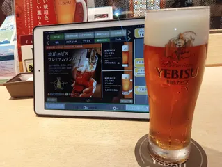名古屋栄◯エフ横丁で飲んだ帰りにエビバで🍺😋‼️ 昨日まで名古屋栄で開催されていた他社🌅の◯エフ横丁!樽生黒生をサクッと2杯飲んで風が強かったので、即地下街のエビバへ避難…!🤣先ずは琥珀をいただきます!お腹空いてたのでホホホタケと秋野菜のグリルを…!😚なかなか美味いこれ、ビールが進みます!🤭飲み比べセットでプレミアムエールと金エビスをチョイス!明日