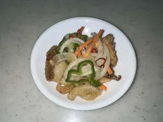 コレらの材料で、漬けダレ、薬味を作る。 我が家はスパイシーなヤツ。😻😋 普通、このさかなでは作らないレアもの。🙀 油のハネで汚れるのを防止するために、フライパン🍳(四角いヤツ)の形に新聞紙を切り抜いて調理する。もちろん、IHだから出来る技。 &nb