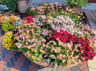 YEBISU BAR STAND 恵比寿ガーデンプレイス店の横で、鉢植えの🏵️花々🌼が綺麗に咲いています🤩