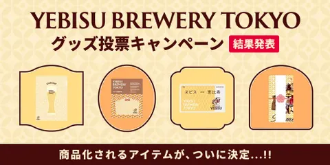 【参加御礼】グッズ投票キャンペーン!(2025年冬販売)のアイテムが決定しました! みなさん、こんにちは!ヱビスSNS担当の我妻です。 YEBISU BEER TOWNの特別企画として実施しておりました「YEBISU BREWERY TOKYOで販売するヱビスグッズデザイン投票」が無事終了し、開発するアイテムが決定しました! 今回もたくさんの方にご参加いただき、