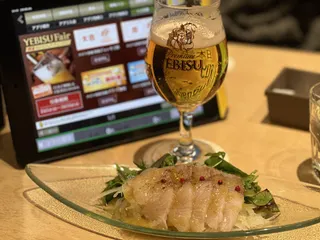 NEW 立春🌸 2月初の YEBISU BAR 🧡まずは、チャンスくじグラス1杯無料券で和奏と、鹿児島フェアでまだ食べていなかった「かんぱちのカルパッチョ」。カルパッチョの味が濃いめだったので、和奏正解! 2杯目はスタンプ欲しさに施設限定半額クーポンでエビスビールと、同じく未食だった「鰹腹皮ときびなごの2