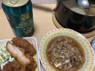 今夜は帰宅が遅くなりましたが いちおう、晩ご飯の準備ができました。と言っても、自分で作ったのは、少し前にYEBISU BARに行ったかたが投稿していた、ときどき作る「肉どうふ」だけです。ただ、牛肉を使った料理には個人的ちょっとだけこだわりがあって、手に入るときは出来るだけ北海道産の牛肉を使います😊なんとなく のこだわり、なんです