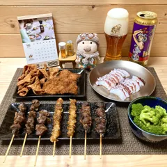 NEW 焼き鳥盛り合わせ × チキンカツ × 鶏皮せんべい × 西海市地タコ🐙 × ブロッコリー🥦 × ヱビスビール🍺