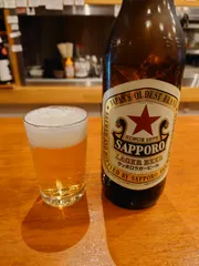 角打ちと赤星 いつもと別の角打ち店。こちらのお店も老舗です。赤星大瓶と湯豆腐をいただきました。店が混んで来たので河岸を変えて。ごはん屋さんでおかずと黒ラベル。写真右から、カツとじかに玉、肉じゃがをいただきました。黒ラベルのレギュラー2缶。美味しかった。ごちそうさまでした。