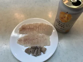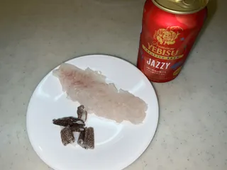 NEW サクッと釣りたてシリーズ90:爆釣キジハタの刺身。😋JAZZYと合わせて。