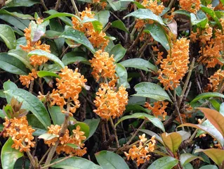 キンモクセイ あいにくの☔でしたがキンモクセイに出会えました🌼雨に邪魔され香りは少し薄くなりましたが季節を感じられて嬉しくなりました😊