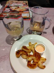 NEW 初の一人サイゼリヤ🍴🍷 先日、YEBISU BAR で🍺からの人生2度目のサイゼリヤ、一人サイゼリヤは初めて🍴ポップコーンシュリンプ🦐&焼チーズミラノ風ドリアを白ワインのデカンタ小(250ml)で🍷味はまあまあ許容範囲、低価格には驚く❗😲