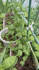 グリーンカーテンにホップを植えました。プランターなので窓を覆う様になるかな。