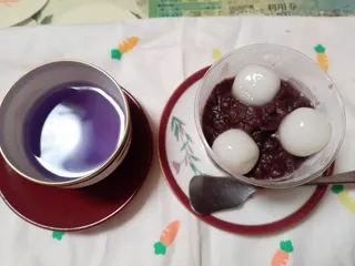 今日のおやつ🍰🥰 三連休の締めくくりのおやつは白玉ぜんざい、バターフライピーの青いお茶 南の島のマンボウ気分お出かけはなかったですが、毎日おやつを楽しみました😊ごちそうさま🎶❤️