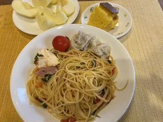 夏から栽培していたバジルをベーコン🥓、トマト🍅と一緒にスパゲティにした。 生バジルなので香りがよく、食欲も増す。 ベーコン🥓の塩気で程よい感じになり、美味かった。😋