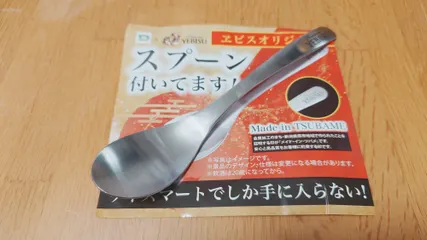 近くのスーパーでヱビスビールを購入。スプーンがついていました。