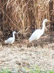 コサギとダイサギかなあ? コサギとダイサギかな?珍しく一緒にいました。 コサギ、チュウサギ、ダイサギと種類がいます。コサギは夏場だと冠毛があるのですぐわかります。それ以外はなかなか見分けがつきにくいです。