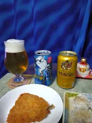 僕ビール君ビールジョーカーくん、再びいただきました。いい感じですよね、このビール、ちょっと高いのが残念ですけど🤣。ヱビス、アジフライ、シウマイとともにいただきました。ごちそうさまでした🙏😎👍。