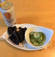真っ黒磯辺揚げ 真っ黒の正体は海苔で ササミを味付け巻いて米油で揚げましたしっとり サッパリ食べられます😋やっぱ ソラチの爽やかとピッタリでした❣️今日も1日お疲れ様デス凄い☂️ 足元や運転等 お気をつけてお帰りください😊明日から 三連休ですが お休みであってもそうでなくても 大事にお過ごし下さい👍