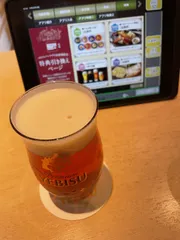 JAZZYクーポンとスタンプ2倍に惹かれて ヱビスバーでグラスで飲むとものすごく美味しく感じられました 福井県のフェアランチとともに 越前蕎麦噛みごたえがありトンカツのご飯少な目でこちらも美味しくいただきました