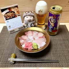 ブリ丼🐟 × KFC🍗 × YEBISU🍺✨ とんちゃんのプー太郎生活3日目の晩ごはんは…またまた親の差し入れ…ブリ丼¥400🤣✨🙌アジフライで有名な、松浦市のお店のブリ丼です✨🐟アリタポーセリンラボの器に盛り付けると…高級ブリ丼に見えます🐟✨🤭笑新鮮で美味しいです🤤✨久しぶりのKFC🍗✨🙌なぜ、プー太郎のとんちゃんが、値上げされているKFCを