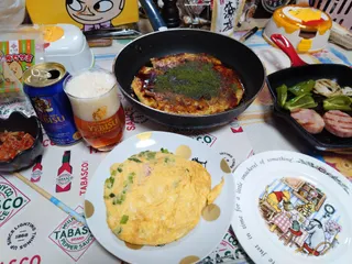 久しぶりのエールとおはなはん(お好み焼き) ズワイガニのかに玉とグリル野菜と一緒にいただきますごちそうさまでした