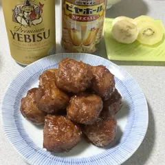 ヱビバ肉団子の再現リベンジ! ~お月見お団子風~ 中秋の名月といえばお団子🍡お団子といえば肉団子!肉団子といえばYEBISUのための肉団子!!ヱビバの肉団子大好きなので妻がサッポロさん公式レシピをヒントに作ってくれました🥰肉団子自体の作り方はサッポロさんレシピで味付けは想像しながらです😅あのカリカリ具合が意外と再現できていて思った以上の再現率でした