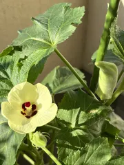 我が🏠のプランター菜園オクラちゃん💕 我が🏠のプランター菜園。 ミニトマトはそろそろ終わりかと 思わせながらも頑張って花を咲かせ ちっちゃいながら実をつけてます♬ 暑い時期に元気がなかったオクラちゃんは 暑さも収まった今頃になって 元気を取り戻し可憐なお花を 咲かせ実もつけ始めま