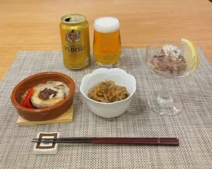 ヱビスがリニューアルしていました ヱビスビールのリニューアル缶でおつまみ三種をいただきました😋 白老町産椎茸のチーズとウニ乗せ焼き、ヤーコンのキンピラ、フクラギの胡麻ダレ和えです。 ヤーコンは見た目は大根に見えますが、食感がシャキシャキしていてキンピラで👍でした。 Newヱビス缶です。ヱビス狂さんの投稿からほぼ一月経ちましたがやっ