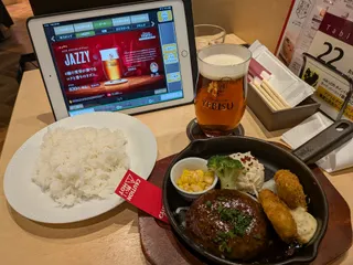 名古屋エビバサカエチカ店でlunchを…!😆 昨日はお昼は久しぶりにエビバでハンバーグランチを食べにきました〜!🤭ここのハンバーグランチはなかなか美味い!コンボは白身魚フライにしました〜!😉ライスは大盛りで…!🥰もちろん休みなので昼間から遠慮なくビールJAZZYいただきます!🤣ここも一人店員さん人事異動があったみたい…!😏名古屋駅うまいもん通り