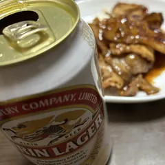 夕ごはん 豚肉の生姜焼き今日はキリンラガー