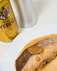 NEW 鯛の煮付け×ヱビス 今日は魚の気分。ふっくら厚みがあって美味しくできました☺️今週もお疲れさまでした〜🍻