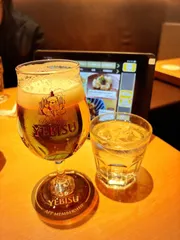 娘と新年会。 八重洲のエビスバーにて。JAZZYでね。美味しいビールで乾杯です。