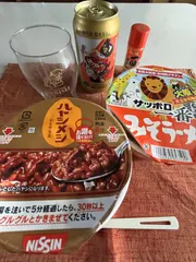 今日のランチと昼飲み🍺 今日はお休み🎶特に予定もないし     お天気もいいのでランチに        出かけようかと思ったけど        外は思ったより寒いし😨         着替えるのも面倒なんで         パジャマのまま🏠でカップハヤシメシと  ラーメンで昼飲み🍺しちゃいました❣️見事完食🎶気がつけば3本