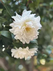 山茶花 ふと気づけば我が家では山茶花が真っ盛りでした。なぜか日陰に植っている方が満開で、玄関先にある日当たりの良い方はまだ蕾ばかりです。アイキャッチのは日当たりの良い方に咲いた最初の二輪(しかし端っこの下の方)。ようやく咲いた!と思って写真を撮ってから、脇の目立たない方に植っている山茶花の木がすっかり満開に