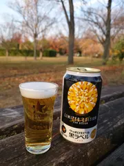 公園と黒ラベル 雨上がりの午後の公園。涼しくて気持ちがいい。エクストラシンクをグラスに注ぐ。冷えたE・シンク、美味しい。