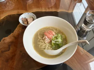 プリっぷりのハマグリの入ったラーメン。 出汁がすごい。👍 ハマグリのうまうまなエキスがタップリと出ており、和風の出汁と合わさって、強烈な旨味になっている。 そぼろ丼と合わせて大満足。😋