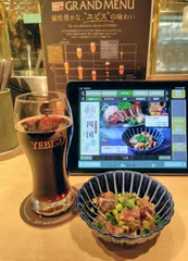 YEBISU BAR グランスタ八重北店🚃四国フェアメニュー「ごま油香るピリ辛葱カツオ」🐟️つまみには良いが、ボリューム的にはちょっと少ないかな🤔プレミアムブラックなどと共に🍺