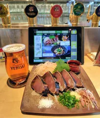 YEBISU BAR エミオ石神井公園店🚃四国フェア、カツオの藁焼き(レギュラー)🐟️価格的に丁度良いので「2,500円(税込)までのお好きな料理一皿無料特典」を使っていただきました😉ま、「可となく不可となく」といったところ🤔個人的には例月どおり、ビーフシチューの方が良い😋ゴールド&エールなどと共に