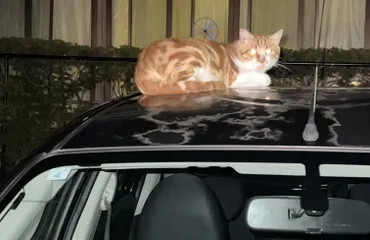 ばあさんの車の上でマッタリする地域ねこ。🤣🤣🤣 気持ちいいのだろうなぁ。🤭