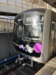 NEW 新車両~大阪メトロ谷町線~ 駅に入ってきた時から「新しいヤツ~~😆❗」とテンション上がりました。顔は谷町線カラーのパープルの水玉が軽快さを感じます goodデザインと思ったのは車両の連結ドアが全面透明隣車両から移動されてもぶつからなくなります。あと座席の空き具合も確認できるし、移動しやすいです。座席はツートンカラー、