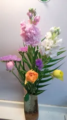 季節のお花 師走になりました。1年はあっという間です。健康に気をつけて、インフルエンザ予防接種をしてきました。ストック 永遠の愛スプレーカーネーション 素朴ソリダコ 永遠の少年