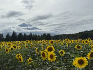 恥ずかしがり屋の富士山☁️🗻と🌻