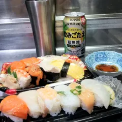 🍣プレミアムエールに寿司🍣 とんちゃんの投稿を見て、夜のAEONへ。鮮魚コーナーで値引きを色々と物色。今日はお寿司とプレミアムエールで。🍺👍