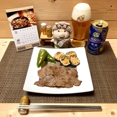 今夜は焼肉 × 和奏🍺✨ とんちゃんのプー太郎生活5日目今夜は鹿児島県産国産牛トモサンカクの焼肉😍✨3割引GET🥩✨🙌美味しくいただきました🤭笑ナスのお布団にしめじを寝かせ、粉チーズの掛け布団をかけて、焼いてみました🤭笑意外といけました🤭✨🍆