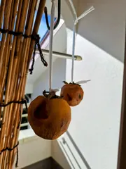 干してみた 庭の柿、皮が傷ついてたのを、干してみました。まだ気温がそう低くはないから、うまくいくかどうか…