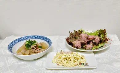 今日はとっても快適な眼鏡👓️が出来上がって感謝しなければいけない日ですが、夫はいきなりの忘年会😄なので私の好きなものを食べる事に致しました大根と豚バラ肉の炒め煮は唯一私の作ったものです🤭生姜も入っており、ピリ辛な感じが私好みなのです