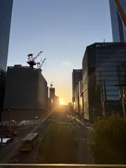 朝日 おはようございます東京ビル街の朝日☀️ お仕事の方行ってらっしゃい🏢そうでない方も一日頑張って行きましょう♪̊♪̆̈