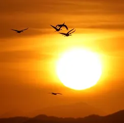朝日に舞うマナヅル🌄 鹿児島県出水市朝日に舞うマナヅル🐦️塒の水を張った田んぼ、目覚めると朝日が上がる前から空を舞い始め、そして朝日が後から昇って来る🌄丁度良く朝日の方角に飛ぶツルは数少ないが、、、😅(過去撮影画像より)
