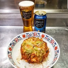 かき揚げ丼🎵ヤリイカ、小海老、セロリ、たまねぎで揚げました。厚みのあるかき揚げは油が沢山必要ですね。面倒でもやっぱり揚げ立ては最高です。今日のビールは、東京クラフトペールエールあ~旨い🎵何でも合うビールでほっとします🍺👍