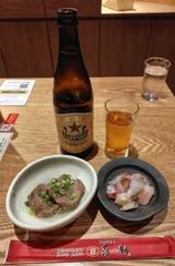厚切りゆでたん&たこわさ グランスタ、味の牛たん喜助🐮お好みの「厚切りゆでたん」🐂&「たこわさ」🐙をつまみにサッポロラガービール🍺😋🍴