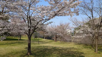 高尾城址見晴らし台から桜と金沢市内、日本海の眺望を楽しみました。桜は満開、階段を登り、息を弾ませながら、視界に広がる風景を見ました。